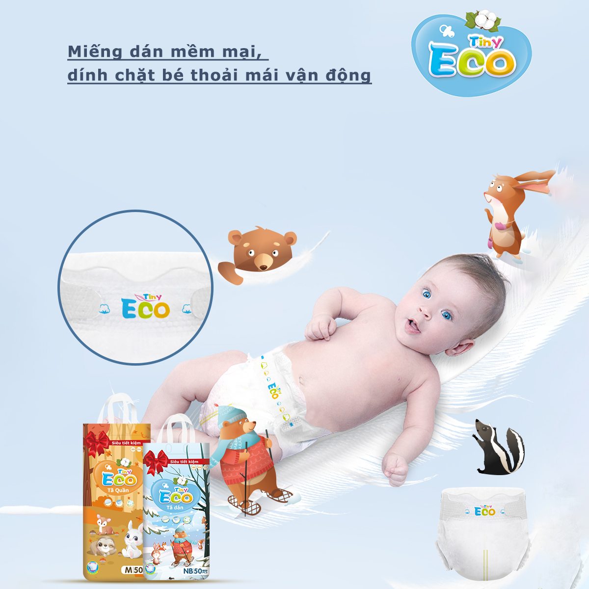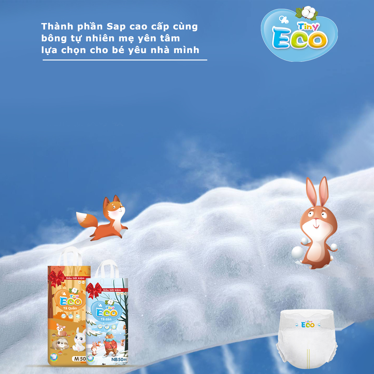 Tiny eco là sản phẩm bỉm giá rẻ, phục vụ cho tất cả đối tượng khách hàng, dòng sản mới được Tiny Sun ra mắt vào tháng 10 năm 2023